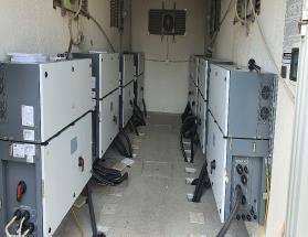 Il team di intervento di concerto con il committente, ha deciso di procedere con la sostituzione di tutti gli otto inverter preesistenti, con inverter nuovi aventi le stesse caratteristiche al fine di avere sempre le macchine efficienti e soprattutto ottimizzare i costi di interventi grazie alla garanzia nuova.